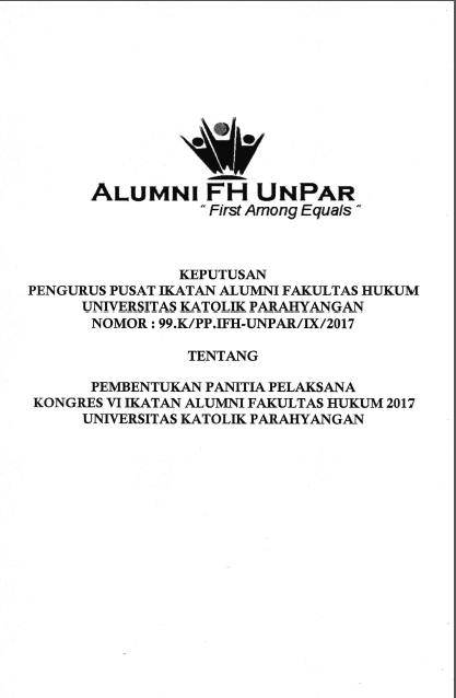 Berikut lampiran surat keputusan Pembentukan Panitia Pengarah & Pelaksana Kongres VI Ikatan Alumni Fakultas Hukum 2017 Universitas Katolik Parahyangan :