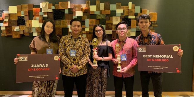 Tim dari Komunitas Mahasiswa Peradilan Semu Nasional (KMPSN) FH Unpar berhasil meraih Juara Ke-3 serta mendapatkan penghargaan ‘Best Memorial’ (berkas terbaik) pada kompetisi BANI Arbitration Moot yang diselenggarakan oleh Fakultas Hukum Universitas Gadjah Mada dan Badan Arbitrase Nasional Indonesia (BANI) di Jakarta. Pada perlombaan kali ini, tim KMPSN FH Unpar terdiri dari Maria Margareta Helmi (2017) sebagai ketua delegasi, Ryano Rahadian (2016), Tarissa Zezilya (2018), Maleakhi Aditya Sarana (2018) dan Agra Athallah Pramono Putra (2018).