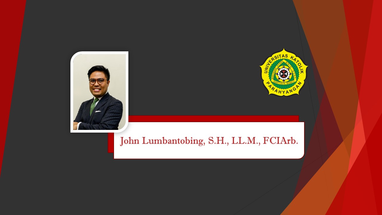 “FH UNPAR mengucapkan selamat kepada Wakil Dekan Bidang Kemahasiswaan dan Alumni FH UNPAR John Lumbantobing, S.H., LL.M., FCIArb., atas pengangkatannya sebagai Fellow dari Chartered Institute of Arbitrators (CIArb),” demikian keterangan tertulis yang diterima, Selasa (17/5/2022).